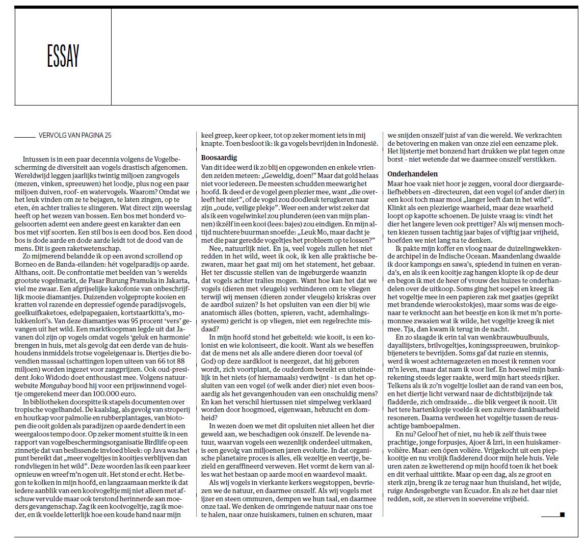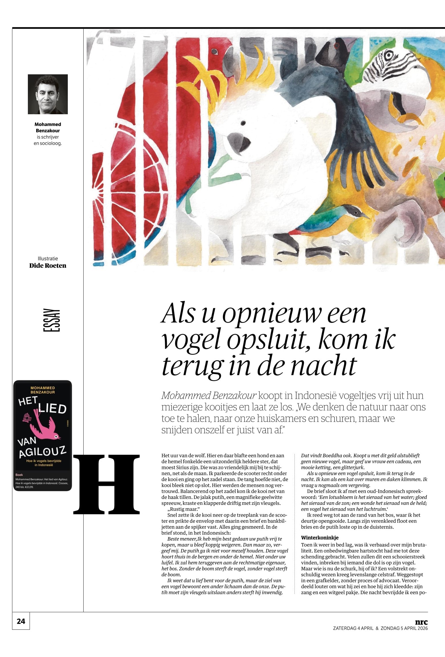 Mohammed Benzakour koopt in Indonesië vogeltjes vrij uit hun miezerige kooitjes en laat ze los. “We denken de natuur naar ons toe te halen, naar onze huiskamers en schuren, maar we snijden onszelf er juist van af.”